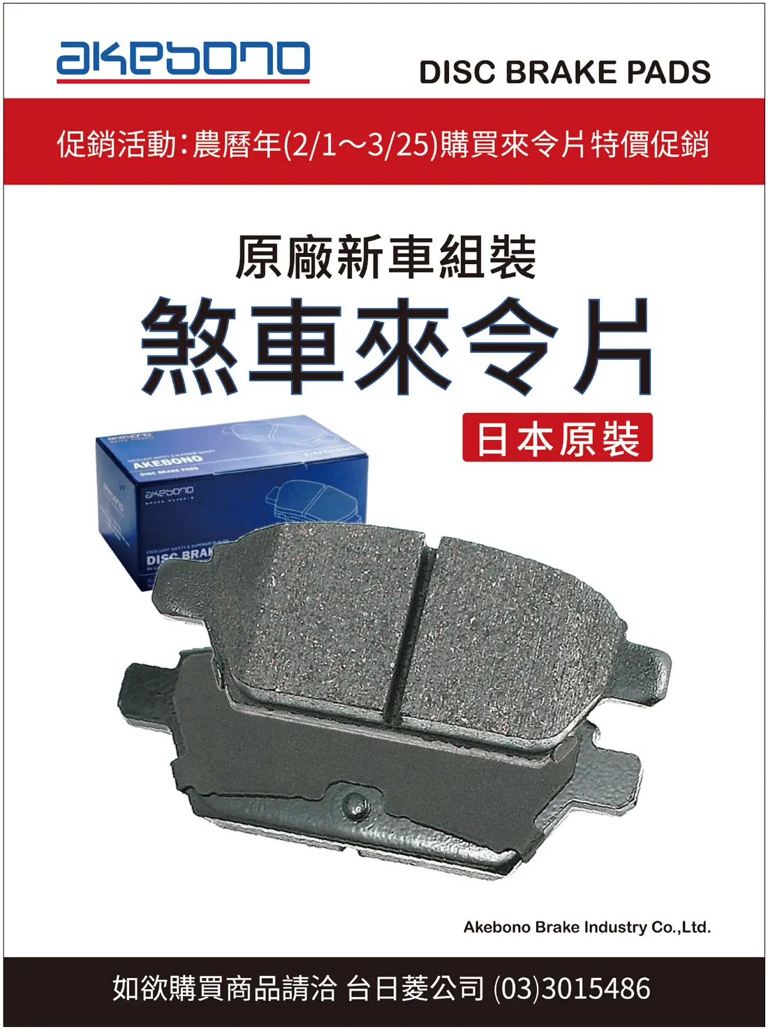 AKEBONO日本原裝進口 原廠新車組裝 煞車來令片 --- 台日菱