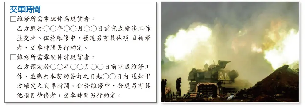 若維修所需零件並非現貨,例如需要向材料行訂購或原廠調貨,條文允許保修廠先提供預定完成時間,但同時要求在契約簽訂後的一定期限內通知車主確定交車日。也就是說,「等零件」不能成為無限延宕的理由,保修廠仍需掌握供貨進度並主動回報。這樣的規定,有助於避免長時間的不確定等待,也促使保修廠建立更完善的工期控管與客戶服務流程。