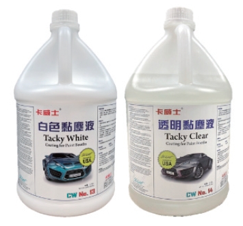 ● 由卡威士研創的環保水溶性黏塵液,黏性持久、有效黏附漆房中粉塵及飛蟲,不但能延長烤漆房設備使用壽命,亦顯著提升鈑噴品質。